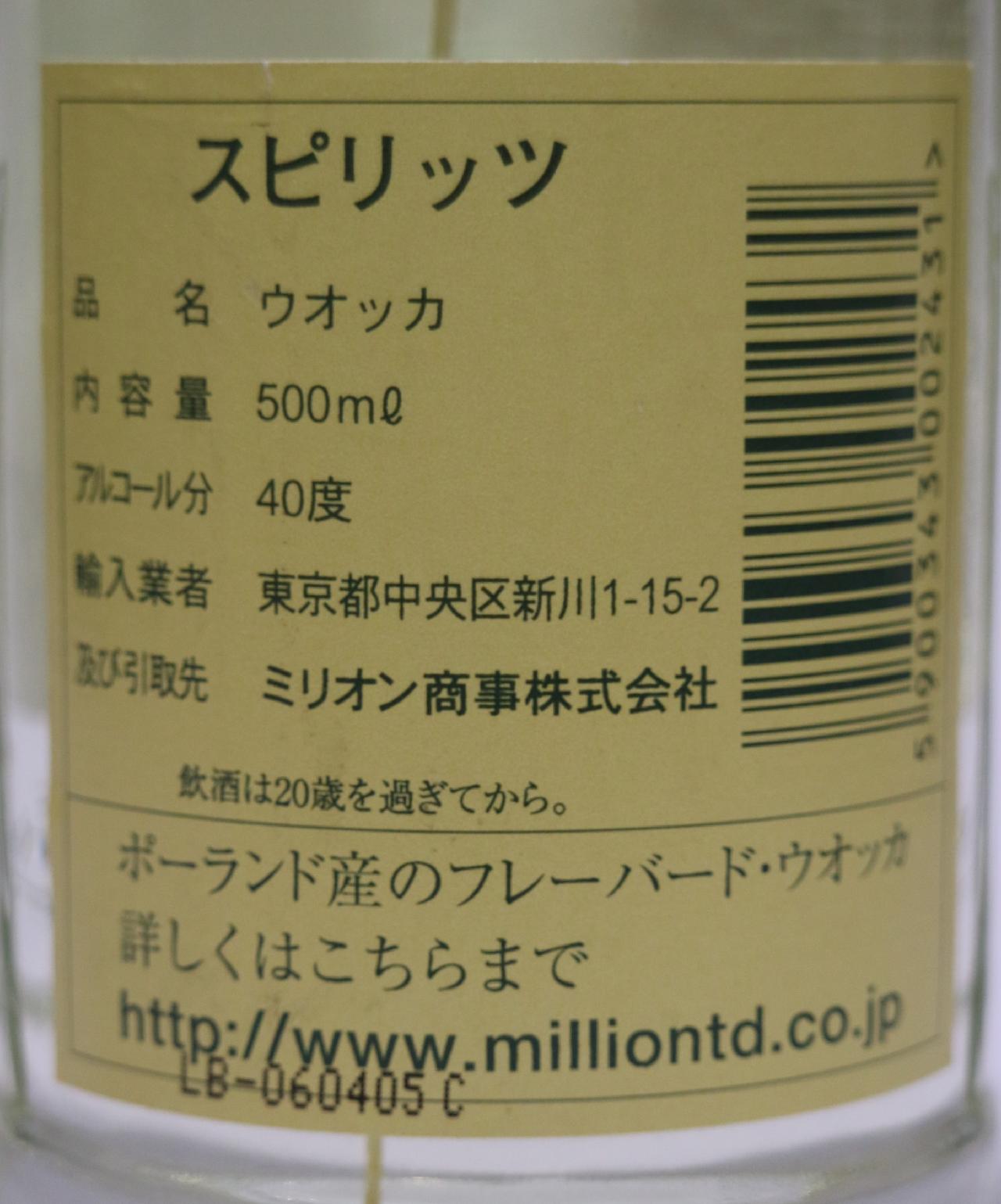 HOME > ウォッカ > [古酒] ズブロッカ 正規品 40度 500mlの詳細